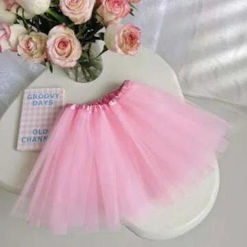 BGFKS 5 Pack Tutu Skirt for Girl Ballet Dance Costume Dress Up Princess Party Girl Tutus with Butterfly Hairbows. Pink