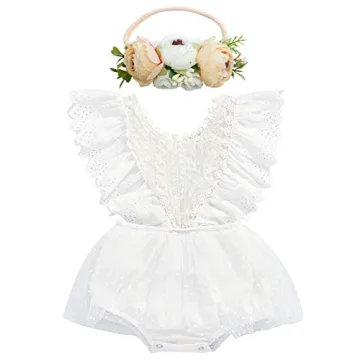 Show moreIntroducing the BGFKS Lace Ruffle Sleeve Romper Tutu, the perfect outfit for your little princess! This adorable baby girl outfit features a beautifully designed lace tulle fabric that gives a touch of elegance and comfort to your toddler’s wardrobe. The included flower and butterfly headbands add an enchanting flair, making this the ideal choice for special occasions and everyday wear alike. Whether dressing her up for a birthday celebration or capturing precious moments in a photoshoot, this romper tutu is guaranteed to turn heads!