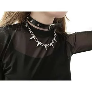 BGTY Rivets Chokers Punk Goth Handmade CCB Material Choker Necklace Spike Rivet Rock Gothic Jewelry (Silver)