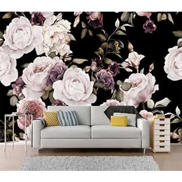 BHICKP-Wall Mural Wallpaper for Bedroom Living Room Purple Flower Wallpaper Rose Mural Wallpaper (155"x 103")