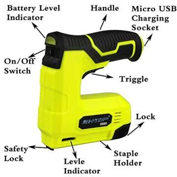 BHTOP Cordless Staple Gun - 4V Power Brad Nailer and Electric Stapler with 1500 Staples and Nails Included