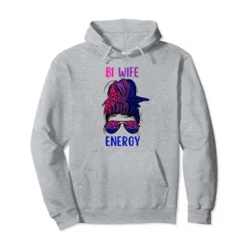 Bi Wife Energy LGBTQ Support Wife Mom Leopard Messy Bun Pullover Hoodie