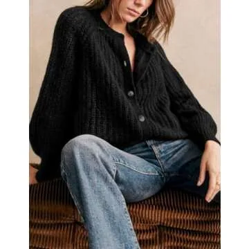 Show moreIntroducing our stunning women's cardigan, a must-have addition to your wardrobe that effortlessly combines style and comfort. Crafted from soft, medium-weight knitted fabric, this cardigan provides a cozy feel against the skin while elevating your fashion game. Its unique design features a rounded neckline, long raglan balloon sleeves, and a slightly oversized volume, making it a fashionable choice for any occasion.