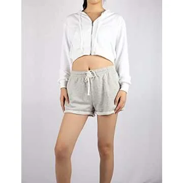 Bianstore Women's Cute Workout Cropped Zip Up Hoodie Hooded Sweatshirt Jacket (White-M)