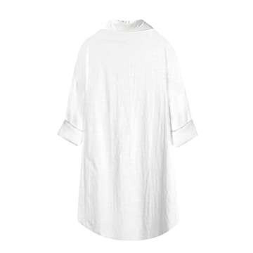Bianstore Women's Oversized Linen Shirts Blouses Tops Long Sleeve High Low Button Up Shirts (White-M)