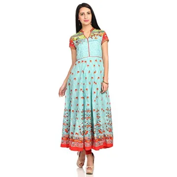 Biba Women's Turquoise Anarkali Cotton Kurta – Perfect Blend of Style and Comfort