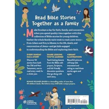 Show moreIntroducing the ultimate collection for nurturing a child’s faith and imagination—Bible Stories for Kids: 52 Timeless Stories Every Child Should Know. This beautifully illustrated book is designed to introduce children to the rich narratives of the Bible through engaging storytelling. Each story is carefully condensed to ensure understanding and retention, while preserving the core messages of faith, love, and kindness. With captivating illustrations accompanying each tale, this book ignites curiosity and inspires moral development, making it a must-have for families wanting to cultivate spiritual growth in their children.