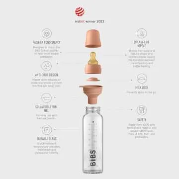 BIBS Baby Glass Bottle. Anti-Colic. Round Natural Rubber Latex Nipple. Supports Natural Breastfeeding, Complete Set - 225 ml, Woodchuck