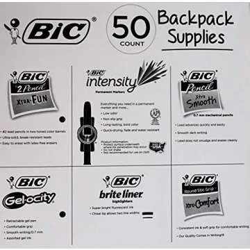BIC Backpack Supplies School Pens, #2 Pencils, Markers, Highlighters, 50 Count