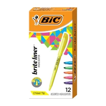 Show more Introducing the BIC Brite Liner Highlighters: a vibrant and reliable tool designed to elevate your highlighting experience! This one-of-a-kind pack comes with 12 assorted colors including yellow, pink, blue, green, and orange, ensuring that you have the perfect shade to emphasize your most important notes. Whether you're a student, an office worker, or just someone who loves to organize information, these highlighters will change the way you interact with text.