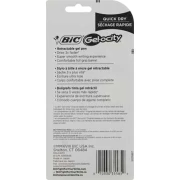 When compared to other gel pens on the market, the BIC Gelocity Quick Dry pens truly shine. While many pens may offer vibrant ink or smooth flow, they often lack the quick-drying feature that is essential for left-handed users and busy professionals. Additionally, the comfortable full-length grip and retractable design set these pens apart from others that simply don’t prioritize user experience. BIC stands by its reputation for quality, offering dependable products that outperform competitors in various categories such as writing comfort, ink quality, and drying time.
