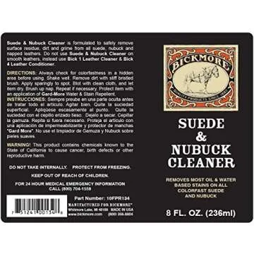 Show moreIntroducing the Bickmore Suede & Nubuck Cleaner, the ultimate solution for maintaining the pristine appearance of your favorite suede and nubuck items. This powerful cleaner effectively removes oil and water stains, ensuring that your shoes and accessories remain as beautiful as the day you first bought them. Crafting a name synonymous with quality, Bickmore takes pride in producing this exceptional cleaner in the USA, reflecting their commitment to excellence.