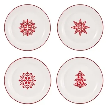 Show moreIntroducing the Bico Holly Jolly Salad Plates, a stunning set of four ceramic plates designed to elevate your dining experience while adding a touch of elegance to your table setting. These 8.75-inch plates are crafted from premium quality ceramic that is both lead and cadmium free, ensuring they are safe for all users, including children and guests. With their glossy and smooth finish, these plates not only serve practicality but also enhance the visual appeal of your festive meals, making them perfect for both everyday use and special occasions.