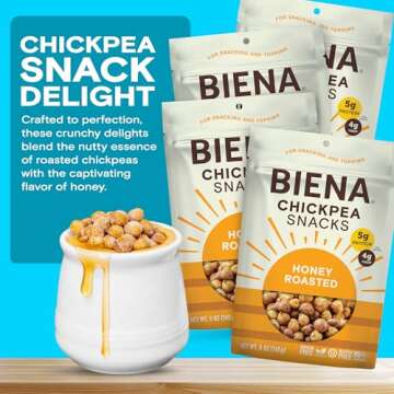 BIENA Chickpea Snacks - Crunchy Roasted Chickpeas - High Fiber Protein Snacks for Adults and Kids - 4-Pack, 5 Ounce Bags - Honey Roasted