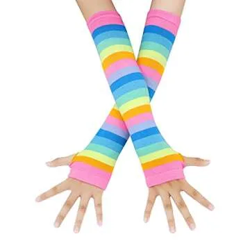 Bienvenu Rainbow Stripe Fingerless Gloves Arm Warmer Knee Thigh High Socks,Multicoloured