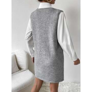 Biffxeu Grey Sleeveless Sweater Dress for Women Sweater Vest Dress with Pockets 2XL