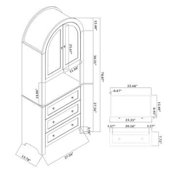 Show moreIntroducing the Bifins 71" Tall Arched Storage Cabinet, an exquisite blend of style and functionality that revolutionizes your storage solutions. At an impressive size of 13.78”D x 27.56”W x 70.87”H and weighing 76.28lb, this cabinet is more than just an ordinary piece of furniture. Crafted from high-quality MDF, it brings a charming farmhouse aesthetic to your home, while its versatility allows it to be used as a tall storage cabinet in the kitchen, a stylish bookcase in the living room, or a spacious pantry in your dining area. The elegant arched design adds a unique touch, making it a standout feature in any room, all while providing maximum organization and efficiency.