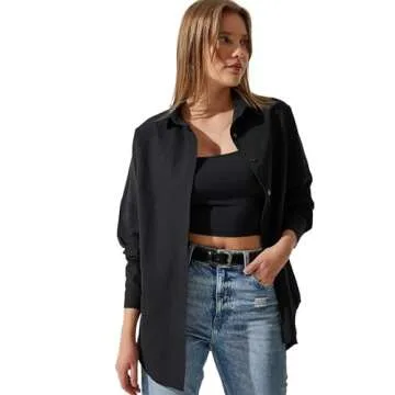Show more Introducing the BIG DART Oversized Button Down Shirts for Women, the perfect blend of style and comfort for the modern woman. Made from a high-quality cotton-polyester blend, these long sleeve shirts offer a soft, breathable fabric that is not only lightweight but also durable. Whether you're heading to the office, running errands, or enjoying a casual lunch with friends, these versatile blouses are designed to fit seamlessly into your wardrobe. Available in a stunning array of colors—including classic black, elegant cream, bold orange, and serene army green—there's a shade for every personality and occasion.
