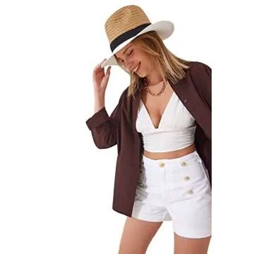 The elegant design of these button-down shirts allows for easy matching with a range of outfits, giving you the flexibility to express your style. These shirts double as boyfriend button-ups, offering a trendy twist that elevates your everyday wardrobe. Whether you're dressing up for a business meeting or down for brunch with friends, these casual v-neck blouses seamlessly adapt to any occasion.