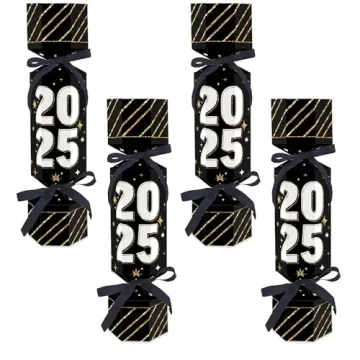 Show moreTransform your New Year's Eve celebrations into an unforgettable experience with our Hello New Year Cracker Boxes. These delightful party favor boxes come in a set of 12 and include coordinating satin ribbons, making them a charming addition to your holiday festivities. Unlike traditional snap crackers, these no-snap boxes offer a unique and playful way to share joy with your guests. Crafted to be filled with fun-sized candies, tiny trinkets, or any party favors of your choice, they'll surely add a whimsical touch to your table setting.