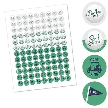 Elevate your special events with the Par-Tee Time - Golf Round Candy Sticker Favors from Big Dot of Happiness, designed to add a delightful touch to your celebration! This meticulously crafted set comes with 108 adorable stickers, making them the ideal decoration for Baby Showers, Birthday Parties, or even memorable Retirement Parties. Measuring at just 0.75 inches, they perfectly fit a variety of small candies like wrapped...