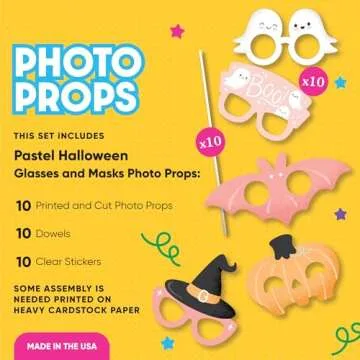 Constructed from high-quality materials, our Pastel Halloween photo booth props are made from thick cardstock paper that is professionally printed. This ensures they are durable and photo-ready right out of the package. Each kit arrives neatly cut out, making assembly a breeze with the included prop kit sticks and stickers.