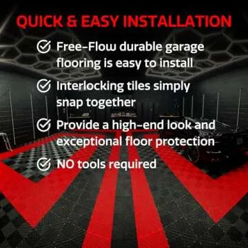 Big Floors RaceDeck Free-Flow Interlocking Garage Flooring Tiles, Non-Slip, Self-Draining, Heavy-Duty, High-Impact Copolymer, Easy Install (48 Pack), Black