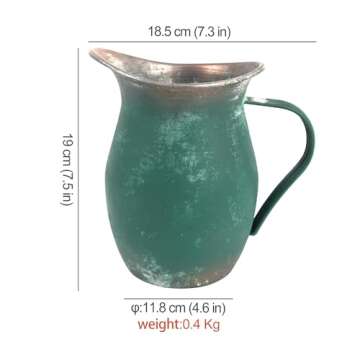BIG FORTUNE Decorative Pitcher Vase Large Rustic Farmhouse Vase for Flowers Vintage Metal Milk Jug Vintage Decorative Pitcher Kitchen Decorations Green