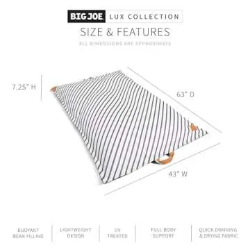 Show moreDrift away into blissful relaxation with the Big Joe Lux Lagoon Lounger, the definitive epitome of comfort and luxury in floating experiences. This oversized body float is uniquely crafted from high-quality, UV-treated fabric, ensuring it withstands the summer sun while providing a smooth surface that won't cling to your skin. The innovative no air required design allows water to flow through the lounger, thereby ensuring that every inch of your body is cradled in ultimate comfort while eliminating the risk of deflation. The exquisite vegan leather accents and durable handles not only enhance its upscale appearance but also offer practicality for easy transportation to your favorite pool or spa.
