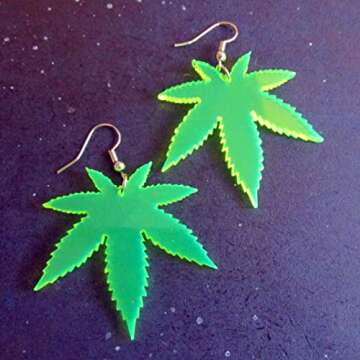 Show moreIntroducing the **Big Neon Green Pot Leaf Dangle Earrings**, the perfect accessory for those who love to express their quirky style! Crafted from vibrant neon green acrylic, these unique earrings not only catch the light during the day but also *glow dramatically under black light*, making them ideal for rave wear or any festive occasion. Each stunning pot leaf pendant measures an impressive 1.75 inches wide by 1.75 inches tall, ensuring they make a bold statement without weighing you down. Their lightweight design ensures comfort, allowing you to flaunt your fun side without sacrificing your ears' well-being.