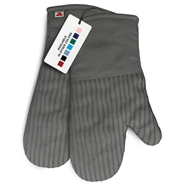 What sets these oven mitts apart is the innovative silicone striping designed for a non-slip grip, enhancing your handling of hot cookware and ensuring that your culinary masterpieces make it from the oven to the table without a hitch. Measuring a generous 12.5 inches in length, these mitts offer extensive protection for your hands and wrists—a must-have for anyone serious about cooking and baking.