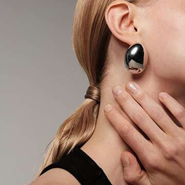Big Silver Polished Oval Dome Earrings Chunky Hoop Earrings Thick Oversized Earrings
