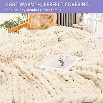 Bigacogo Chunky Knit Throw Blanket for Couch, 60x80 inches, 100% Hand Knitted with Thick Jumbo Chenille Yarn, Cozy Soft Large Rope Knot Cable Crochet Blankets for Sofa Bed Living Room, Beige