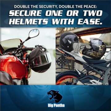 BigPantha Motorcycle Helmet Lock & Security Cable - Black Carabiner Combination Lock Secures Your Helmet, Jacket, Gloves, or Bag - Helmet Lock with Free Carry Pouch & a Small Flashlight