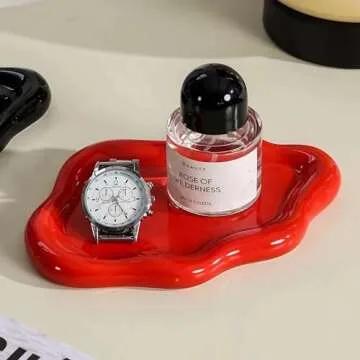 Show moreIntroducing the BIGPIPI Ceramic Jewelry Tray Dish, an exquisitely crafted cloud-shaped plate that beautifully brings form and function together. This charming red tray, measuring L: 7.6", W: 5", and with a thickness of 0.6", stands as a testament to high-quality material and elegant design. The smooth surface and base provide an effortless clean-up while ensuring it retains its beauty over time. Whether you are looking to keep your jewelry organized, like rings and necklaces, or need a stylish spot for your keys, this jewelry tray is designed not just to serve as a storage solution but to elevate your decor as well.