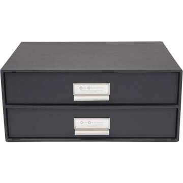 Show more Introducing the Bigso Birger Drawer Desktop Unit, the ultimate solution for enhancing your workspace organization! This desktop unit is not just any storage box; it’s a stylish companion designed to bring order to your chaotic workspace. Constructed from solid, recycled fiberboard and covered in a sleek paper laminate, it offers a touch of elegance to your office decor while promoting sustainability. With its ability to store A4 and letter-sized documents, this unit lets you keep essential papers, flyers, and miscellaneous items at your fingertips yet neatly concealed.