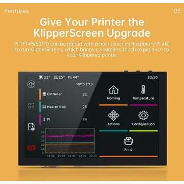 This screen also boasts compatibility with KlipperScreen, enhancing your 3D printing projects by giving you the ability to control your printer from a visually appealing and user-friendly touch interface. Compatibility with models like the Raspberry Pi 4B allows for a flawless integration that will elevate your home or professional setup.