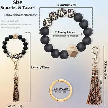 Show more Introducing the BIHRTC Beaded Keychain Bracelet, a stylish and functional accessory designed to elevate your everyday carry needs! Made from high-quality elastic silicone material, this unique bracelet features a fashionable blend of 14 vibrant silicone beads, a natural wooden bead, and a chic PU leather tassel. This charming wristlet not only serves as a stylish keychain but also doubles as a beautiful bracelet, perfect for both wearing and displaying your keys in style. Lightweight yet sturdy, it ensures comfort during all-day wear.