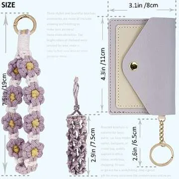 Show more Introducing the perfect blend of practicality and style – this beautiful package includes a soft cotton handmade weave bracelet wrist lanyard, a chic PU leather cards holder wallet, and a stunning hand-knitted net lipstick holder. The Bobo macrame keychain features a delightful bohemian weave style adorned with gorgeous floral patterns created from vibrant cotton threads, making it a true statement piece. Handcrafted with unmatched care, this cute keychain is lightweight and soft, ensuring comfortable use while adding a touch of exotic flair to your outfit.