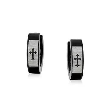 Show moreDiscover the perfect blend of faith and style with our Biker Jewelry Small Religious Mid Evil Laser Etched Fleur De Lis Cross Black Huggie Hoop Earrings. Made from hypoallergenic stainless steel and beautifully finished with a black IP plating, these earrings are designed not only to provide comfort for the wearer but also to serve as a proud testament to their faith. Each pair features a striking fleur de lis cross, symbolizing fidelity and devotion, making them a meaningful accessory for those who cherish their beliefs. Measuring 0.5 inches in length and 0.2 inches in width, these lightweight earrings (3.9 grams) are designed to fit snugly in the ear, ensuring they stay in place throughout your day. Perfect for men and women alike, these earrings make a stylish statement and a thoughtful gift for any occasion.