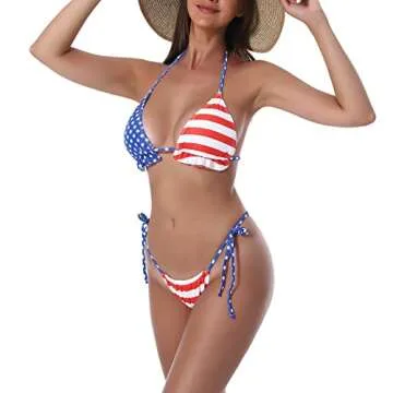 Bikinis Swimsuit Set for Women Swimwear Triangle Bathing Suit Tie String Thong (L, American Flag)