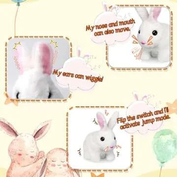 Show moreIntroducing the Bilinott Bunny Toys for Kids, an enchanting blend of realism and interactivity that brings the charm of real rabbits right into your child’s playroom! Crafted from ultra-soft plush fabric, this plush bunny toy emulates the delicate textures and warmth of real fur, ensuring it’s not just a toy, but a delightful companion for children aged three and up. The intricate design features wiggling ears, a twitching mouth, and a charmingly animated nose that captures the essence of a living bunny. As it hops around, your kids will be mesmerized, sparking their curiosity about the animal kingdom from the comfort of home.