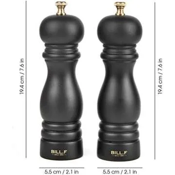 BILL.F Salt and Pepper Grinder Wooden Pepper Mill Grinder Salt Pepper Shakers Set of 2 with Adjustable Ceramic Rotor- 7 Inch