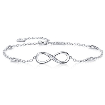 Show moreIntroducing the exquisite 925 Sterling Silver Infinity Anklet Bracelet from BILLIE BIJOUX, an enchanting piece designed to symbolize never-ending love and friendship. This elegantly crafted anklet features a striking infinity figure-eight design that gracefully encircles the ankle, showcasing the beauty of infinite connections. Made from premium 925 sterling silver, this anklet is not only a fashion statement but also a heartfelt expression of emotions, embodying the essence of eternity and empowerment. Each piece is uniquely crafted; the exquisite polish techniques ensure that the bracelet shines beautifully, accentuated by glittering white cubic zirconia stones that add a touch of sparkle. Additionally, the bracelet includes four charming heart charms, enhancing its significance and aesthetic appeal.