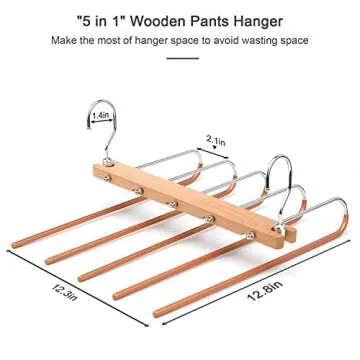 BILLKAQ Magic Pants Hangers, Space Saving Closet Hangers 5 Layers 2 Uses Multi Functional Pants Rack | Solid Metal & Wood Heavy Duty Wardrobe Organizer Racks for Clothes Trousers Ties(2 Pack)