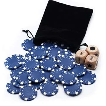 Bilywey Upgrade Left Right Center Dice Game Set with 3Pcs Beech Wood Dices + 36Pcs 11.5g Poker Chips (Blue)