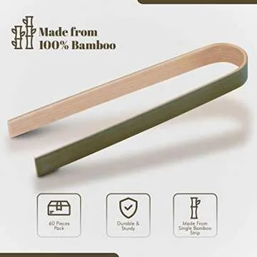 Bimnic Wooden Tongs for Cooking – 60 pcs Mini toaster tongs - Mini Bamboo Tongs for the Kitchen – Natural Green Color – Disposable Cooking Utensils