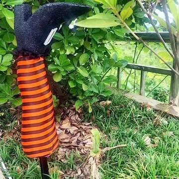 BinaryABC Halloween Witch Leg Yard Stakes,Hallloween Upside Down Witch Legs,Wicked Witch Legs,Hallween Outdoor Lawn Decorations,Halloween Haunted House Decor (Orange)