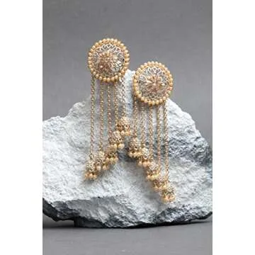 Bindhani Long Tassel Golden Chain With Indian Bahubali Jhumki Earrings For Women