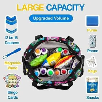 Bingo Bags with Pockets for Bingo Accessories Supplies Large Bingo Tote for Bingo Daubers Bingo Gifts for Women Bingo Lover Water Resistant Bingo Carry Bag with Shoulder Strap Bingo Game Essentials